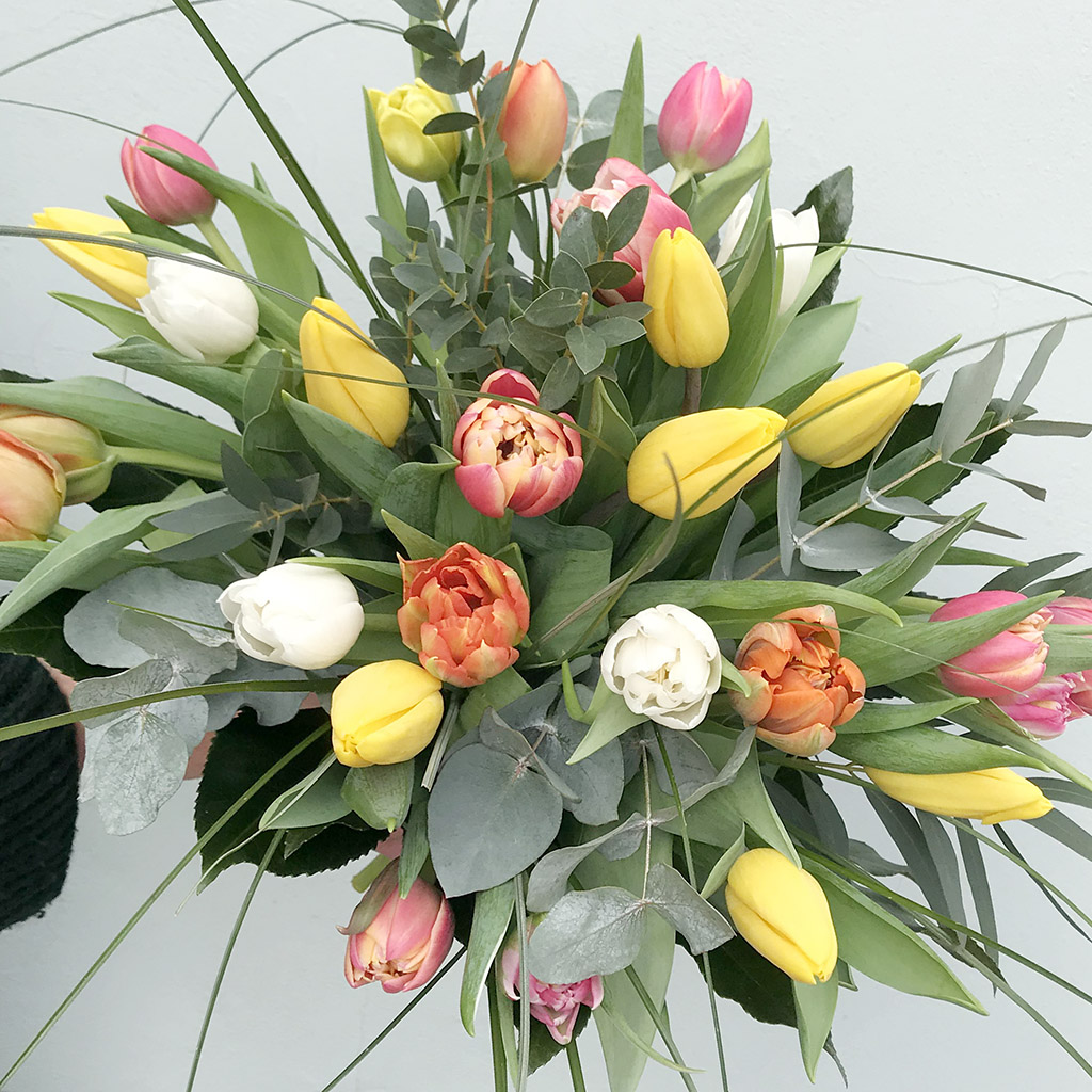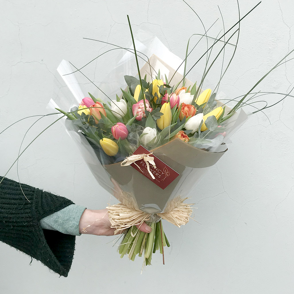 A hand-tied bouquet of everyone’s favourite spring flower – the tulip.
