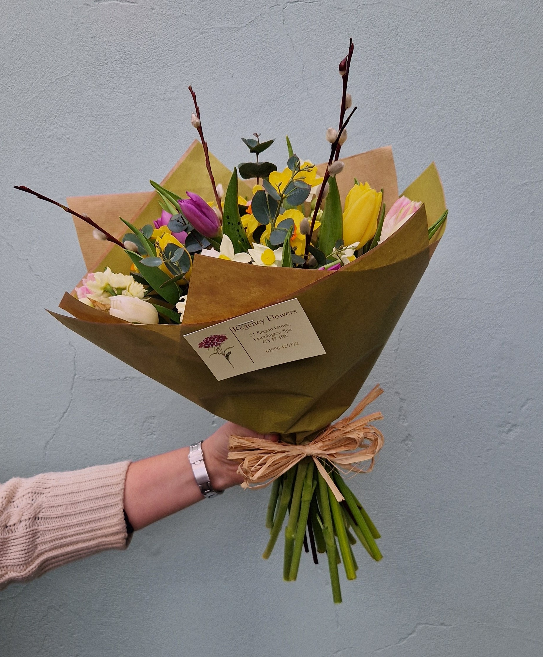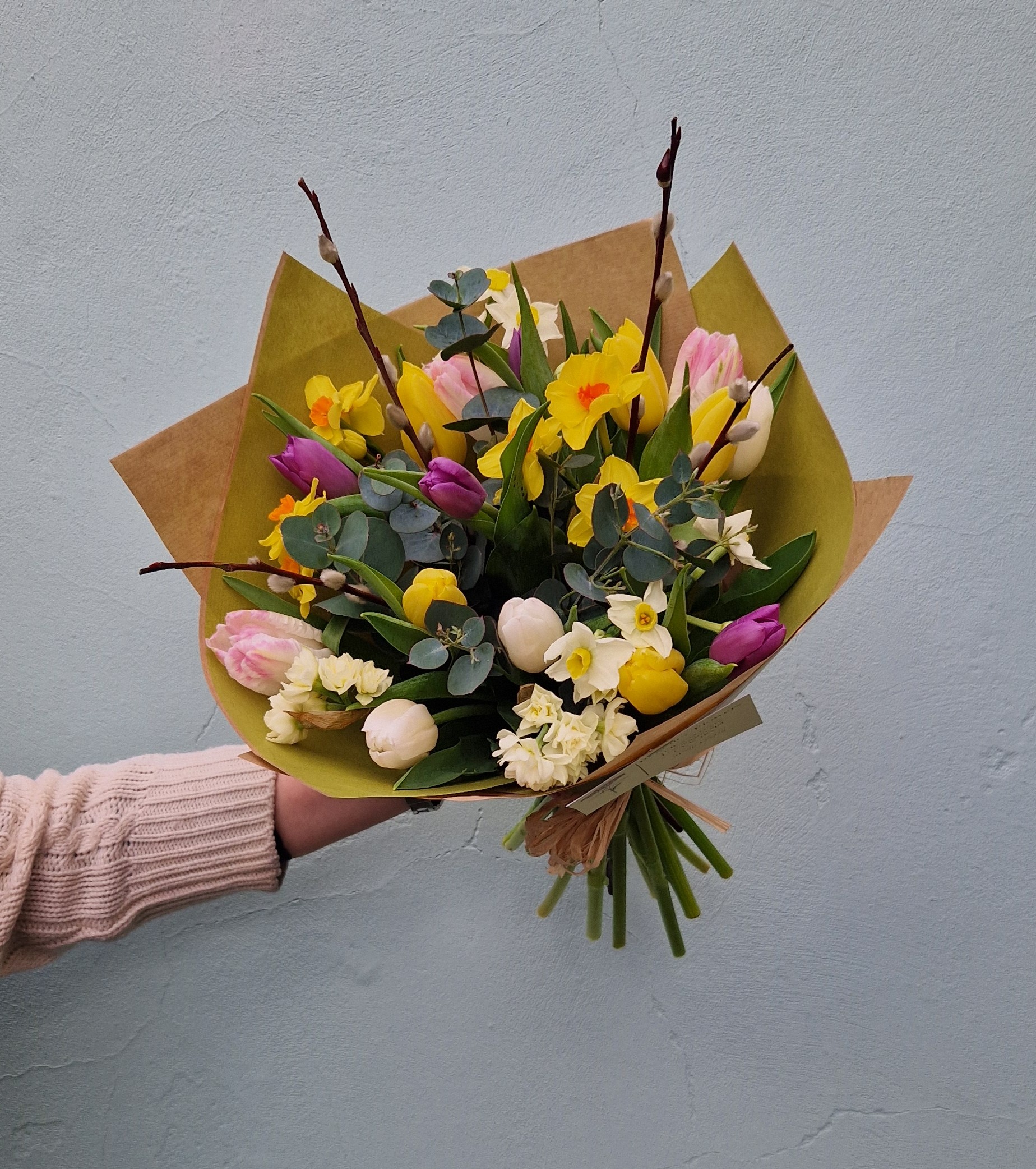A hand-tied bouquet of everyone’s favourite spring flower – the tulip.